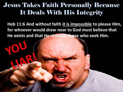 Few people would come right out and accuse Jesus of lying; but, that is what unbelief is all about. The reason Jesus requires faith is because it is your acceptance of His words as being true. He has the entire universe to back up His honesty and integrity. He has demonstrated in every way that He goes strictly by the book on being honest and faithful not only to His word but to what is just, right, and fair.