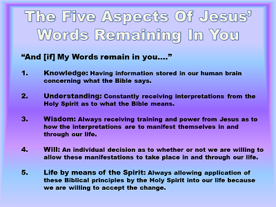 “And [if] My Words remain in you....” The five aspects of His Words remaining in us.