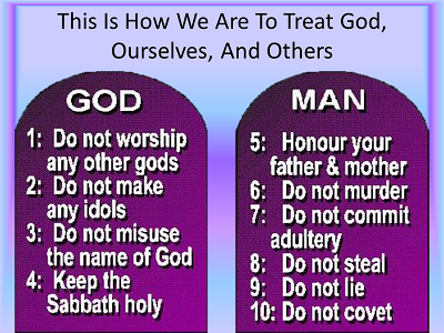 Exo 20:3-17 (NIV) You shall have no other gods before Me. You shall not make for yourself an idol in the form of anything in heaven above or on the earth beneath or in the waters below. You shall not bow down to them or worship them; for I, the LORD your God, am a jealous God, punishing the children for the sin of the fathers to the third and fourth generation of those who hate Me, but showing love to a thousand generations of those who love Me and keep My commandments. You shall not misuse the name of the LORD your God, for the LORD will not hold anyone guiltless who misuses His name. |