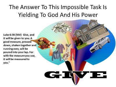Sharing sacrificially with the needy will cause worry, if we don’t let Jesus deliver us from it. Sharing sacrificially isn’t a characteristic we are going to be able to live by on our own. This issue is so huge that it is virtually being ignored in most of Christendom. We are struggling with having the kind of time to do the things God has called us to do. If Jesus were to ask us to take care of some ministerial assignment, we would have to call our boss and ask for the day off.