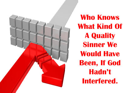 When we come to Jesus, it not only saves us from our past and present sins. It keeps us from getting worse. We were heading into a life of sin that was going to be unspeakable. People often have no idea how much God is influencing those who have not had a chance to come to Jesus. God is holding on to their lives and keeping them from going all out for evil.