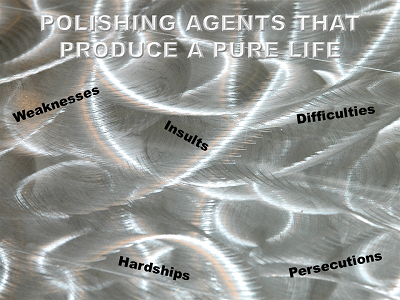 We just need to consider the fact that weaknesses, insults, hardships, persecutions, and difficulties are the polishing agents that God uses to remove impurities from our lives and ministries. The more that happens, the more the power of God pours through us to the needy.