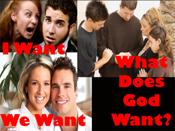 When you have two people becoming one person in a marriage, it isn’t a matter of just being able to compromise. It isn’t a matter of taking each person’s wishes and finding a middle ground for agreement. It isn’t even a process of mixing the two opinions together so as to come up with one decision. If the desires of both spouses are selfish and body, world, or Satanically motivated, then BOTH “wants” need to be given up. The big issue is, what is best for the marriage, and only God knows what that is.
